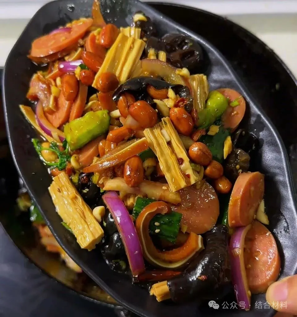 我家.年夜饭.必备的.就是.这道凉.拌什锦,食材.丰富,一盘.子看着.就喜庆。关键是.做法超简.单,所有东西.往一.起拌一.拌就成.了,新手.也不会翻.车。去年.我做.了一大盆,上桌五分.钟就见.底了,我爸.说比红.烧肉.还抢手。