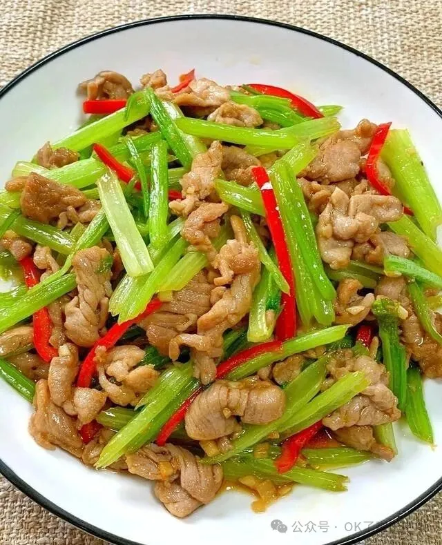好吧 , 这道严格说不算纯素 , 但肉丝就放一点点 , 主角还是芹菜!