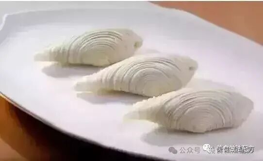 做法:用拍皮刀拍成薄皮(每只3錢),放入小許已蒸熟的假蟹黃和珊瑚蚌餡(每只5錢),包好后做成金鱼形,用刀起魚紋,面上放少許蟹子做魚春,再粘上黑芝麻做眼,每籠3只,蒸5分鐘即成。