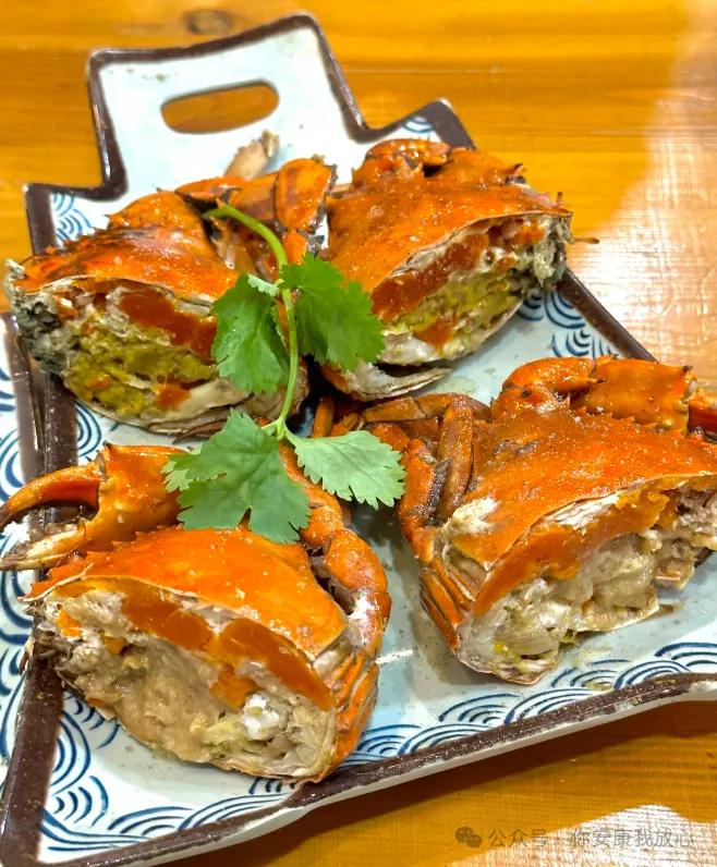 新鲜的青蟹不用太复杂。 一半清蒸,蟹膏像流金;另一半姜葱快炒,锅里一响,香味就往外窜。敲开蟹钳,汁水顺着手背往下淌,米饭在边上等不及了。