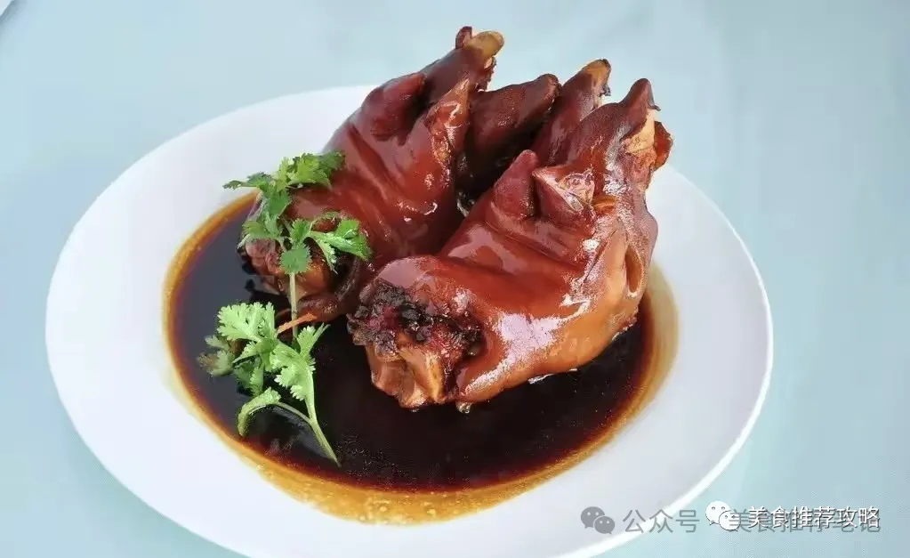 送子龙蹄,出自嘉兴西塘,始创于明代,是一道历史悠久的传统菜肴。龙蹄是一种猪肉制品,采用优质猪腿肉,配以数十种祖传佐料,经煨煮蒸焖、旺、文火反复,肉质酥嫩脱骨、肥而不腻、味美相宜。