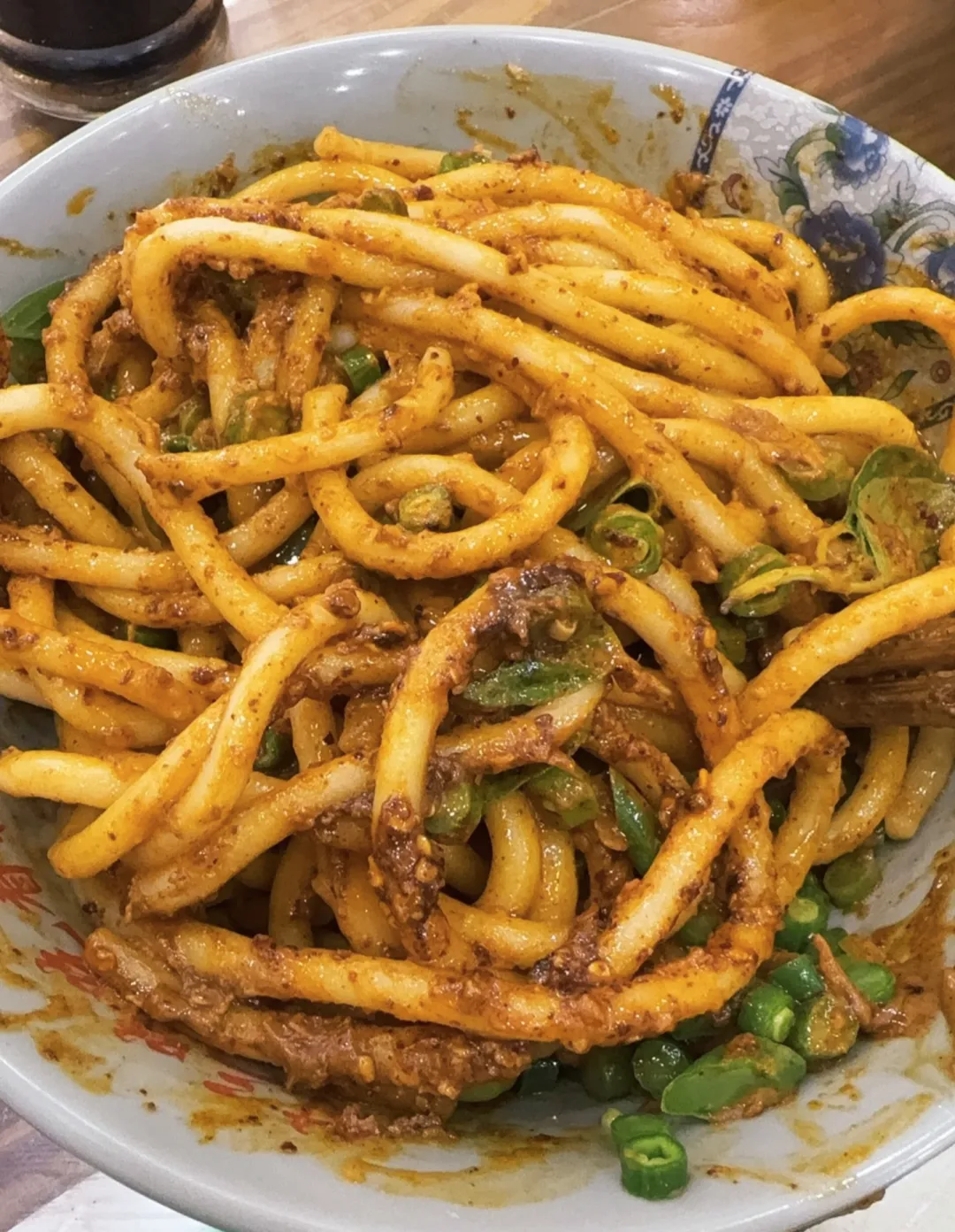 阜阳早餐代表,机器压制的粗面条,拌芝麻酱、荆芥和辣油,口感筋道,似意大利面。