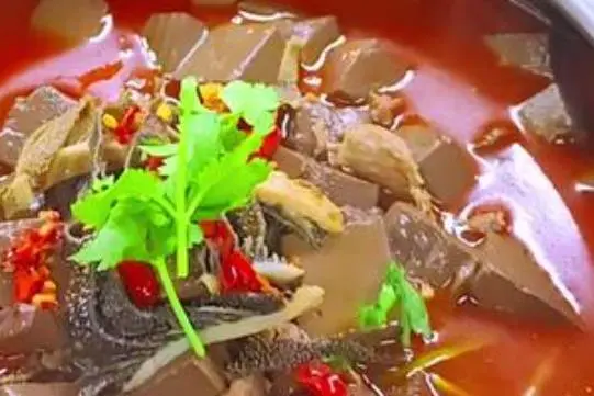 老李的店里挂着块旧木牌,写着 “霸王汤” 三个字。他说这名字是曾国藩给的:当年湘军在新化练兵,士兵们常喝这汤驱风湿、补体力,曾国藩尝了赞不绝口,说 “此汤有霸王之气”,从此这名号就传了下来。更早的时候,梅山先民还把三合汤当 “犒军菜”,传说蚩尤带兵打仗时,就用牛血、牛肉煮汤给士兵们暖身,辣汤下肚,将士们战斗力都强了几分。