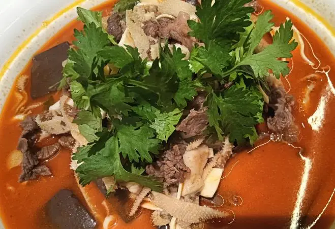 娄底人提起三合汤,总绕不开 “新化” 二字。这道从宋代梅山地区流传下来的老菜,不像精致宴席菜那般讲究摆盘,却凭着一口热辣鲜醇,成了当地人刻在骨子里的味觉记忆。老李做三合汤三十年,选料的规矩从没变过:牛肉得是公黄牛的里脊肉,顺着纹理切薄片,嫩而不柴;牛血要选刚接的母黄牛血,加井水按 1:3 的比例调和,凝出来才会像豆腐脑般滑嫩,煮久了也不碎;牛肚更挑剔,只取母水牛的 “金钱肚”,先用粗盐搓去黏液,再用牛骨汤慢煮两小时,煮到用筷子能轻轻戳透,嚼着才会脆中带韧。