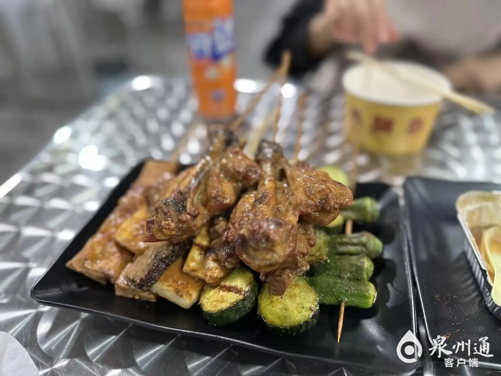 深夜的泉州,烧烤摊烟火升腾。在泉秀街的春哥铁板烧,裹着白砂糖外皮酥脆、内里软香的“烤白粿”是招牌,懂吃的人一来就点三五个;位于津淮街的苏厝桥头烧烤,独特的炭火烟熏味让烤串入味又不油腻;而在西湖附近的鸡翅皇,烤鸡翅外酥里嫩、个头饱满、肉香四溢……每个泉州人的夜宵清单里,都藏着一家烧烤摊。