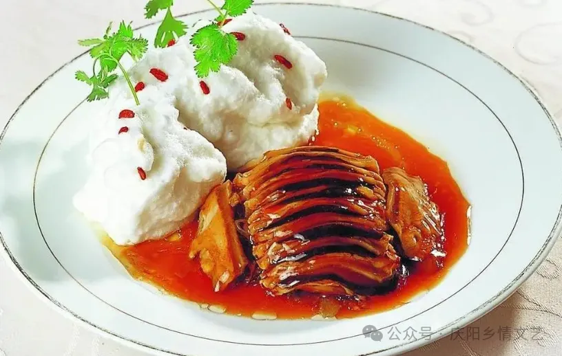 炖至汤汁浓稠,不断将汤汁浇在鱼身上,让每一寸鱼肉都吸饱酱汁。出锅的鲤鱼色泽红亮,酱汁浓郁,肉质紧实弹牙,没有丝毫土腥味,咸香中带着微甜,鱼刺少而软,老少皆宜。这道硬菜是兰州宴席上的常客,象征着“年年有余”的美好寓意,每一口都带着黄河水的清冽与鱼肉的鲜香,是大自然与烹饪技艺的完美结合。