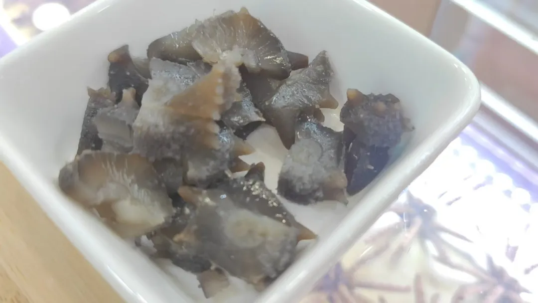 做法:将鲜食海参解冻,切片后可根据个人口感可蘸料服用,如酱油、芥末等