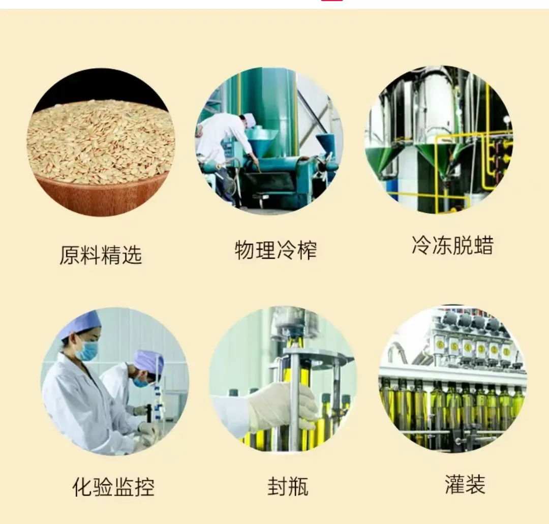 冷榨亚麻籽油是在低温条件下,用物理机械比较大的压力榨取的亚麻籽油。这种工艺最大的优势就是能够最大程度地保留亚麻籽中的营养成分。与热榨工艺相比,冷榨避免了高温对营养物质的破坏,特别是α-亚麻酸等热敏性营养成分。