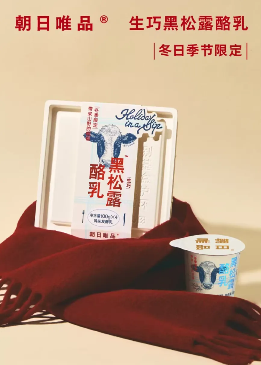 新品采用循环农作牧场奶源,生牛乳含量>80%,酪乳质地绵密浓稠,入口即化;添加来自五大山林产区的野生黑松露,鲜香馥郁,搭配100%印尼可可,丝滑醇厚,冬日氛围感拉满;更有Q弹饱满的芝士爆珠,口感层次更加丰富;每100g含3.3g优质蛋白;2℃-6℃冷藏,保质期25天。