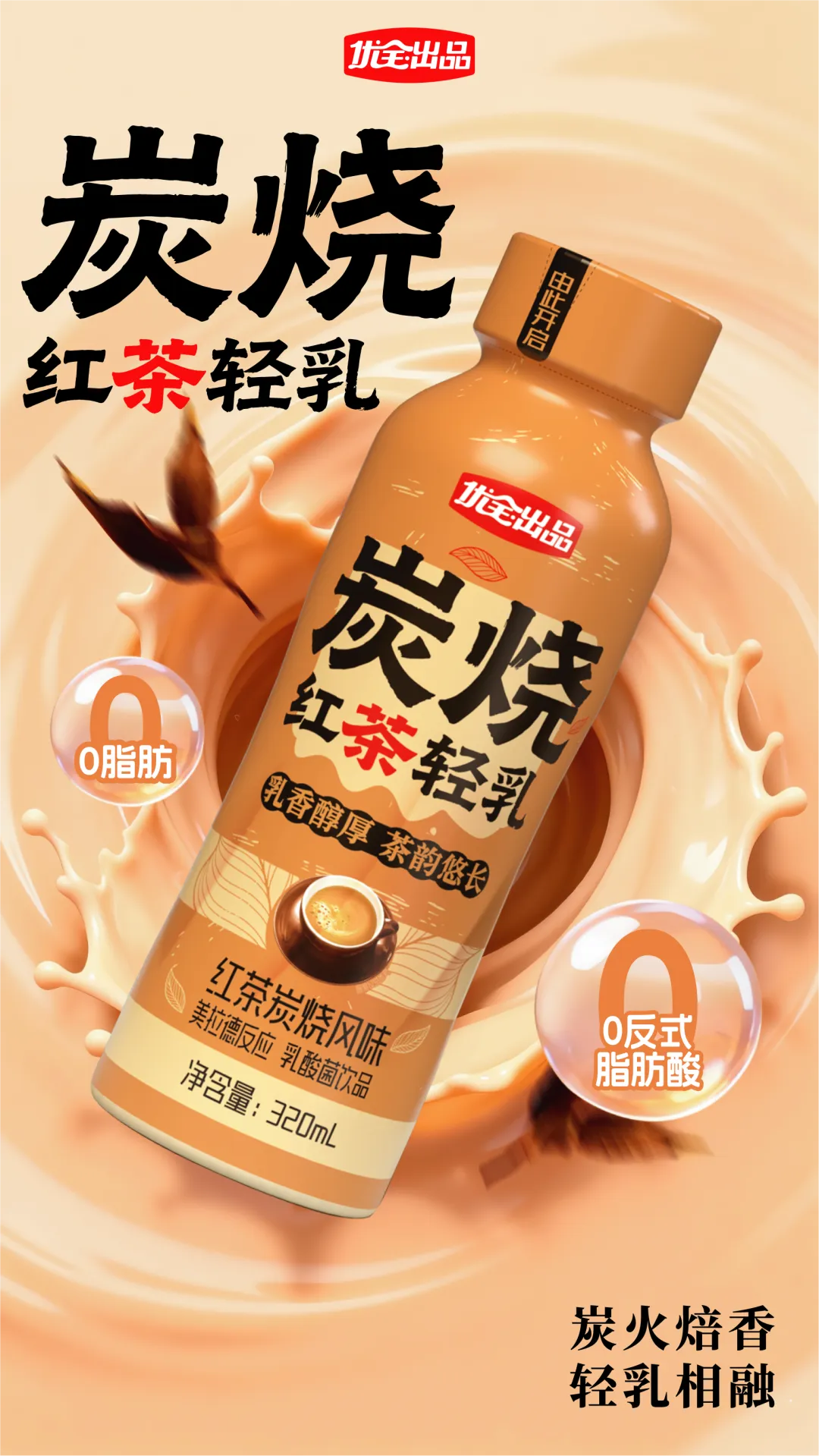 健康属性延续:延续0脂肪+0反式脂肪酸的标签,解决了“奶茶类饮品不健康”的消费顾虑,同时320ml的容量刚好适配“单杯即享”的休闲场景;