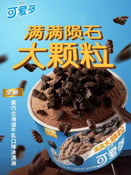 可爱多上新全新新品系列。甜品杯装结构,满满陨石大颗粒,黑巧北海道牛乳口味冰淇淋最上层铺满一层香脆曲奇饼干粒,中间是黑巧风味冰淇淋,下层是北海道牛乳风味冰淇淋。海盐焦糖奶茶口味冰淇淋,最上层铺满一层香脆曲奇饼干粒,中间是海盐焦糖风味冰淇淋,最下层是经典锡兰奶茶口味风味冰淇淋。净含量88g。