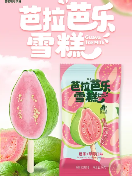 普啦啦上新芭乐草莓风味冰淇淋,细腻纹理仿真外形,仿真巧克力脆皮,复刻真实芭乐表皮肌理。口味层次丰富,草莓芭乐味道雪糕。芭乐原浆添加≥10%,草莓酱添加≥1.5%。添加饼干碎粒。在罗森便利店、711便利店售卖,净含量70g。
