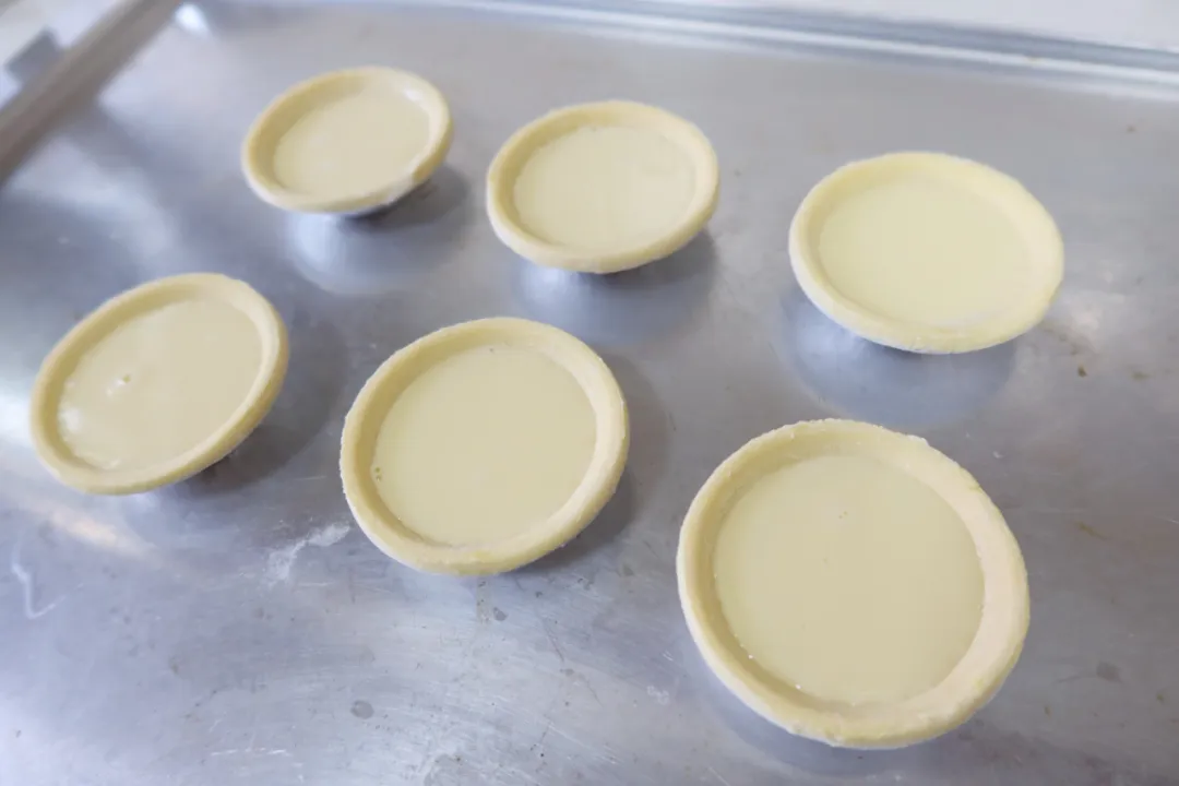 蛋挞皮不需要提前解冻,现用现取就行。蛋挞皮目前市面上主要有206,207,208三种规格,常见的是207,直径7厘米左右。此配方可以正好灌满6个。