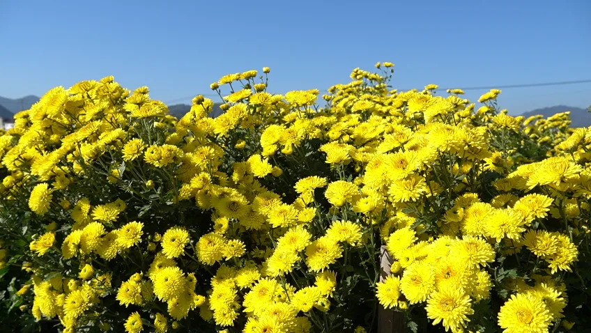 满目金黄的菊海迎风绽放,