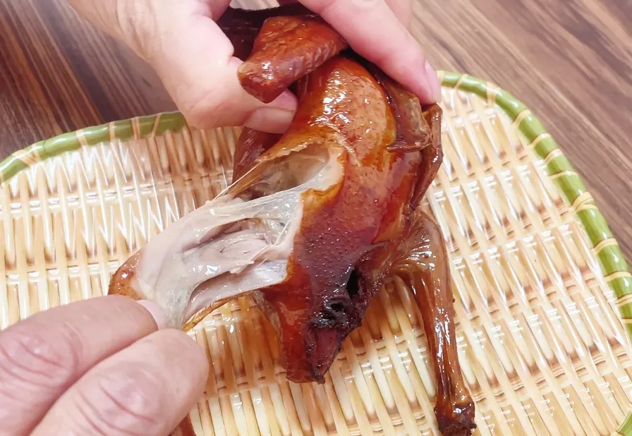 一只香喷喷的顶哈红烧乳鸽就此诞生啦!用手轻轻一撕,香气四溢。入口外皮焦香酥脆,内里肉质鲜嫩多汁,咸香中带着丝丝甜意,令人满口留香,回味无穷。