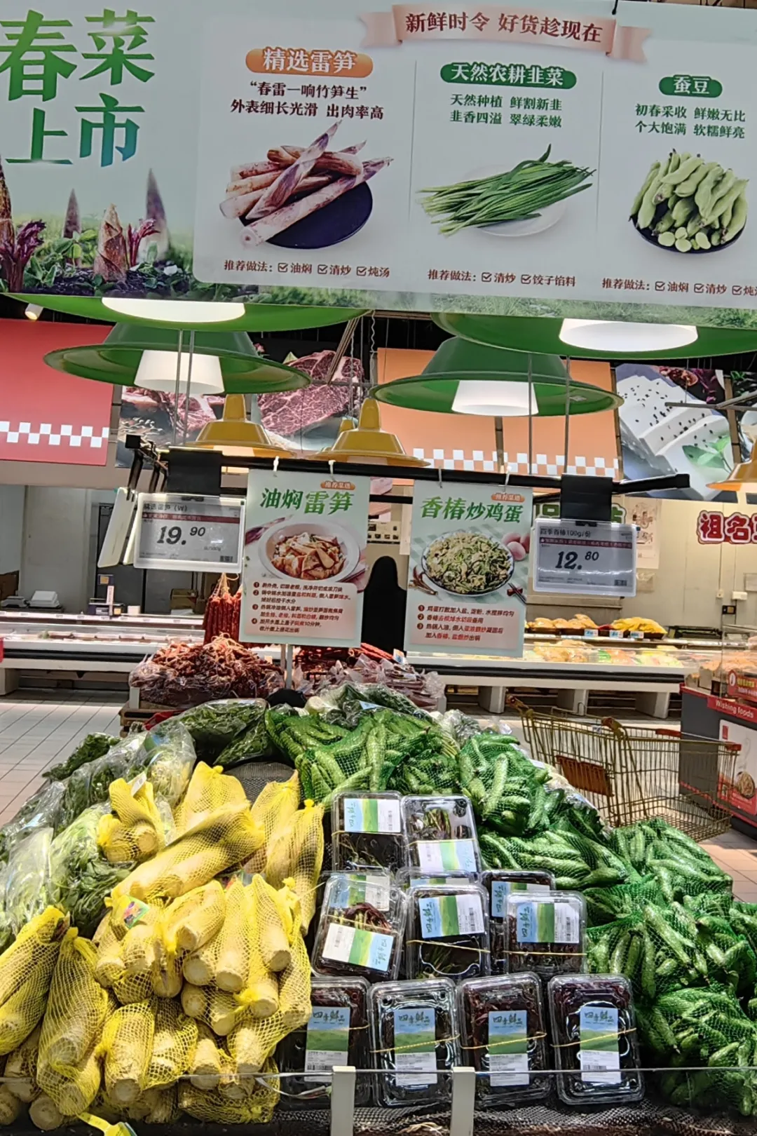 在华严菜市场,前来买菜的市民络绎不绝。在许多蔬菜摊位前,最显眼的位置都被水灵灵的春菜占据,嫩绿的蚕豆、沾着泥土的春笋、被扎成小把的香椿,让人目不暇接。