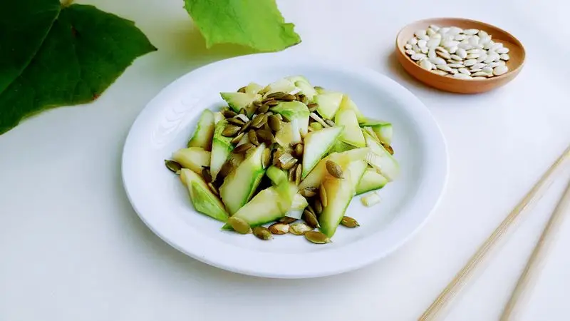6. 清炒葫芦瓜片制作完成,一道低盐低脂的清胃菜。