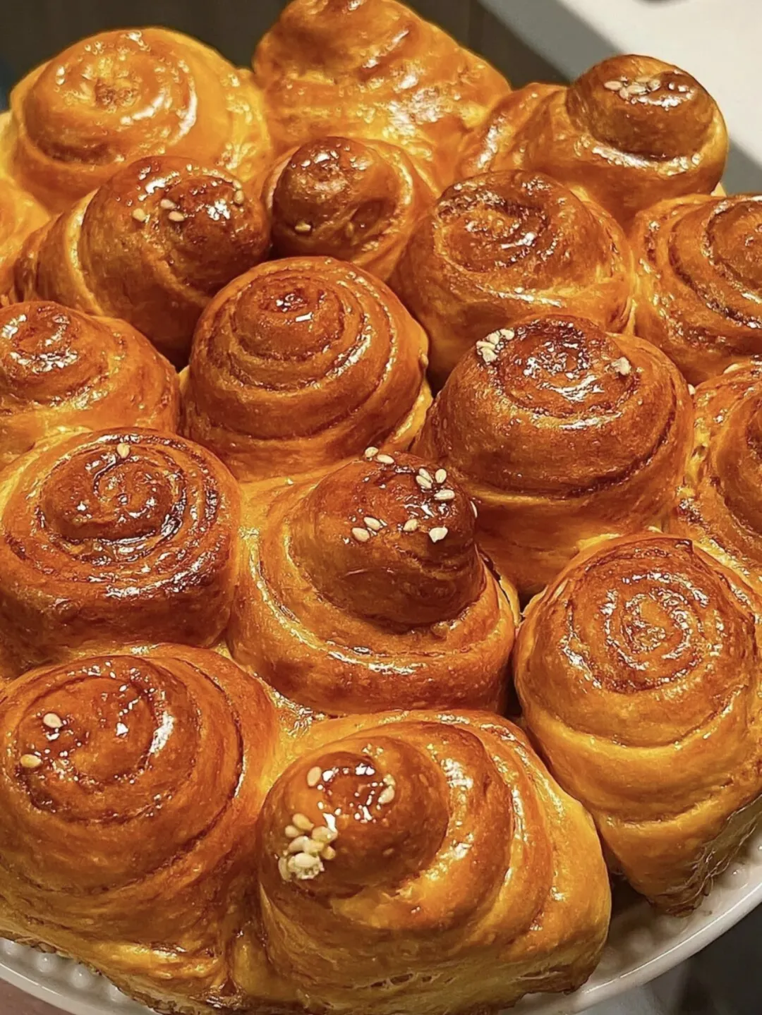 3. 发到两倍大,一次发酵完成,分割成24份,滚圆,直接放在烤盘中,开始二次发酵。