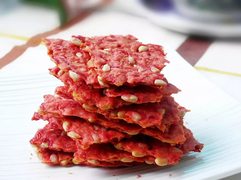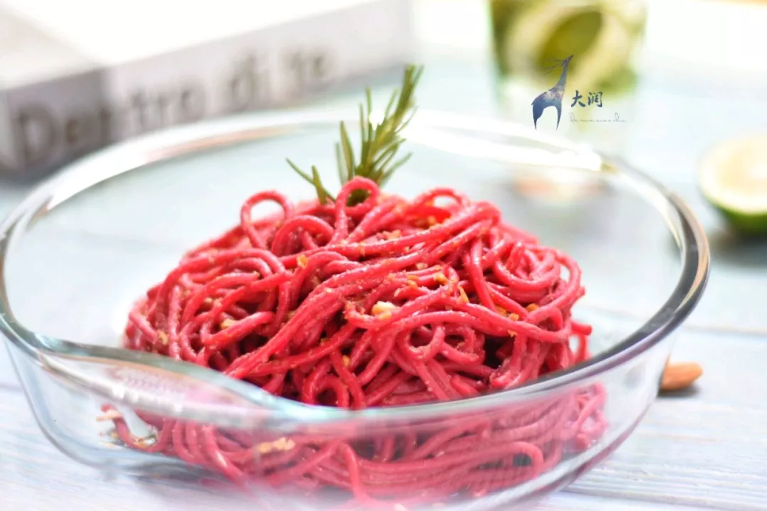 6. 甜菜根立马就染红了意面,在表面撒些坚果碎格外香, 天然的红色色素,看着都补血,坚果味浓郁,食补就是这样健康的!