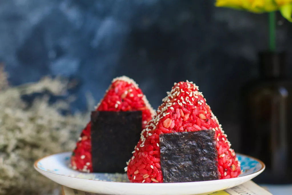 3. 熟米饭+甜菜根泥+寿司醋搅拌均匀