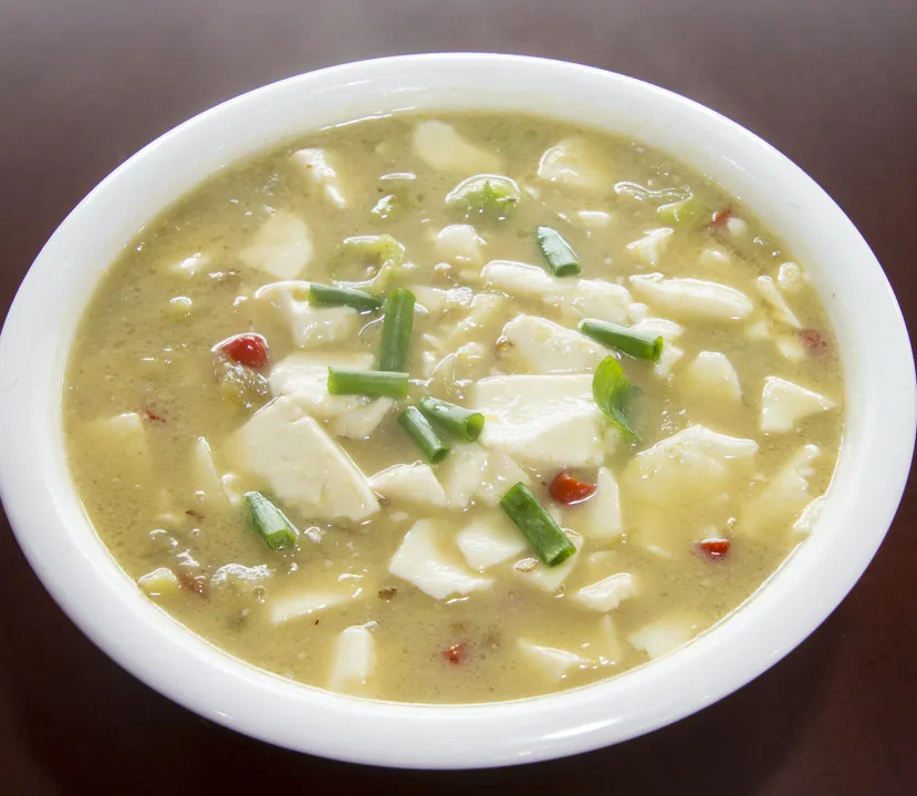 烂菘菜的魅力在于其“化腐朽为神奇”的蜕变。它的制作工艺独特,选用当地特产的“厚大高脚白”白菜,经过近一年的特殊腌制发酵,最终白菜软化乃至变成汁状,形成其标志性的“臭”味。这道菜体现了汤溪人物尽其用的生活智慧。在物资匮乏的年代,人们连丢弃的芋梗、临近变质的食材都巧妙利用,创造出了烂菘菜滚豆腐、毛芋梗煮青豆等美味。关于其起源,传说一户做豆腐的人家偶然将腌过头近乎烂掉的白菜与豆腐同煮,竟发现香气独特,邻居食用后病体康复,因此流传开来。