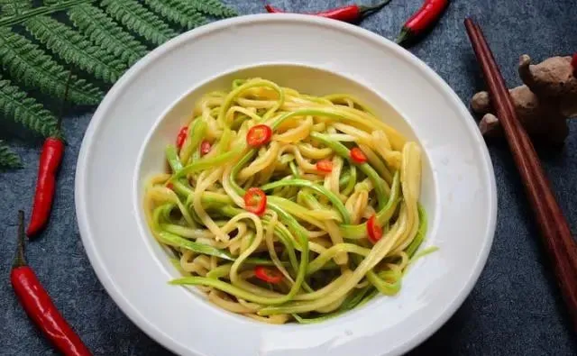 角瓜就是通常我们叫的西葫芦,它可是补水高手,它含丰富的水分和维生素,常吃有补水美容的作用,谷雨后要多吃些角瓜。推荐做凉拌角瓜丝这道菜。