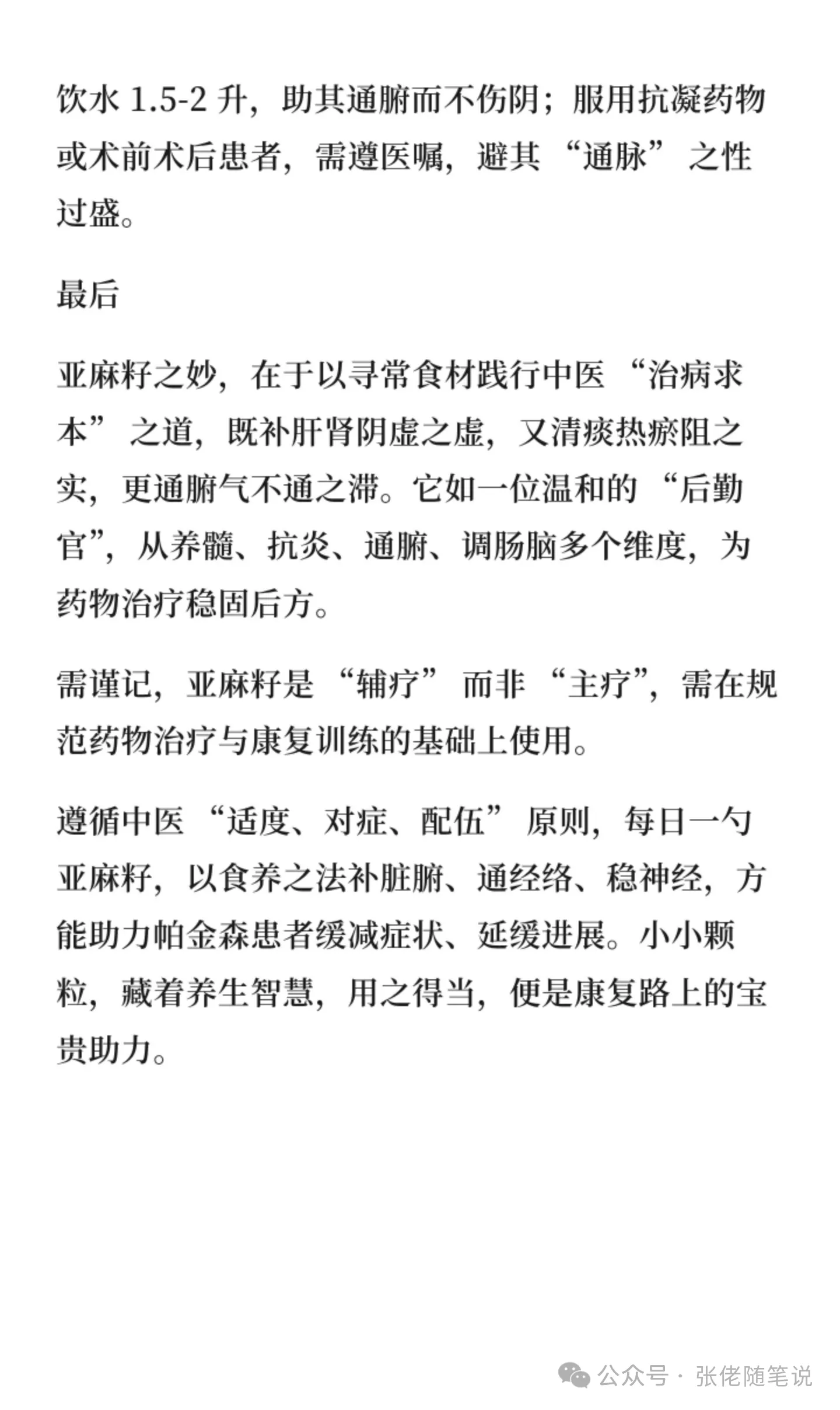 禁忌与时机:亚麻籽含蛋白与纤维,需避开左旋多巴类药物服用时间(服药前 1 小时或服药后 2 小时),防影响药物吸收;其性偏润,食用时需每日饮水 1.5-2 升,助其通腑而不伤阴;服用抗凝药物或术前术后患者,需遵医嘱,避其 “通脉” 之性过盛。