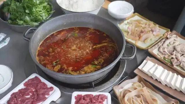 除烙锅外,“娇嬢嬢红豆牛肉火锅”凭借地道风味圈粉无数。凭着一锅熬煮得软糯绵密的红豆牛肉,成了本地人和游客争相打卡的美食地标。浓郁的肉香混着红豆清甜,食客围炉品尝软烂牛肉与暖呼呼的红豆汤,鲜辣中带着回甘,享受秋日里的惬意。