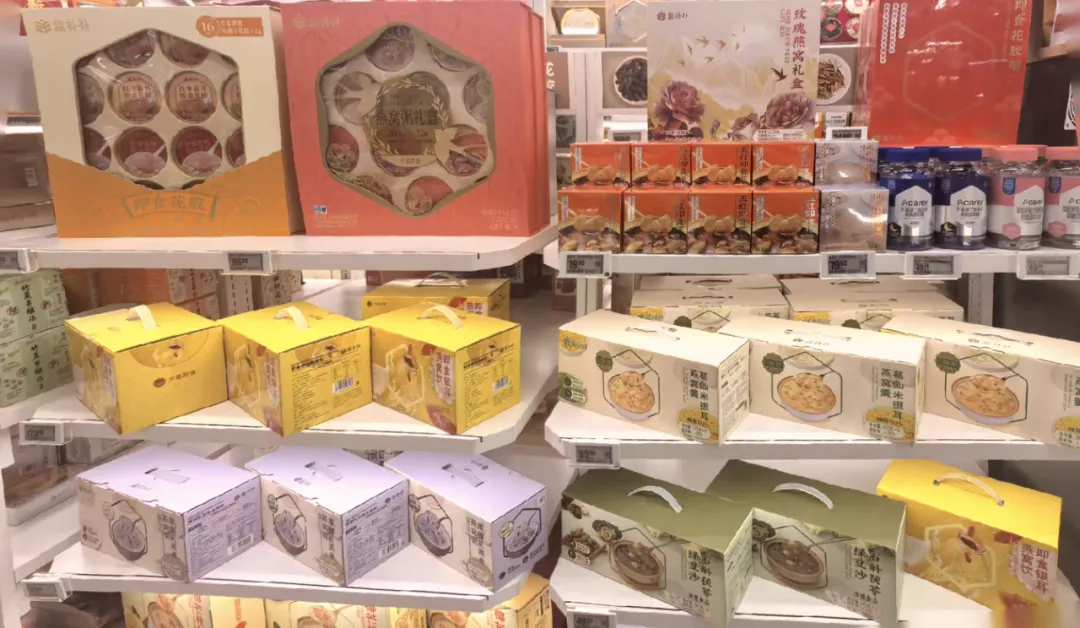 高端食材的消费热不仅停留在鲍鱼、海参、帝王蟹等水产层面,也体现在滋补品的采购中。有永辉超市工作人员向新京报记者透露,近两年以来,消费者对食品的选购愈发注重其健康属性,除关注一些产品是否减盐、减糖外,对滋补品也有了更多需求。今年永辉推出的健康礼盒团购中,包含了阿胶、花胶、即食燕窝、西洋参、蛋白粉等多类礼盒,“问燕窝的人最多,送女性客户的话,阿胶、花胶也是热门选择。”盒马生鲜线下门店的“盒补补”区域也有店员介绍,今年国庆,除即食燕窝、铁皮石斛、人参礼盒外,石斛茯苓绿豆沙、燕窝粥等将滋补食材和主食结合的产品销量也不错,后者预算更少、食用方式简单,年轻人选的多。