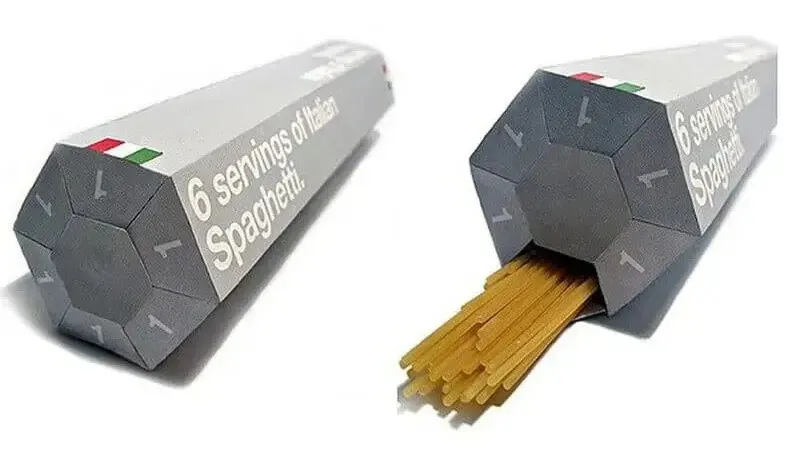 设计师尼尔·弗莱彻为那些“永远吃不够意面”的人想出了一个简单的解决方案——一个六格的隔层包装,每份意面一个隔层。现在,包装行业可以利用这一点:实用性和资源的灵活运用。