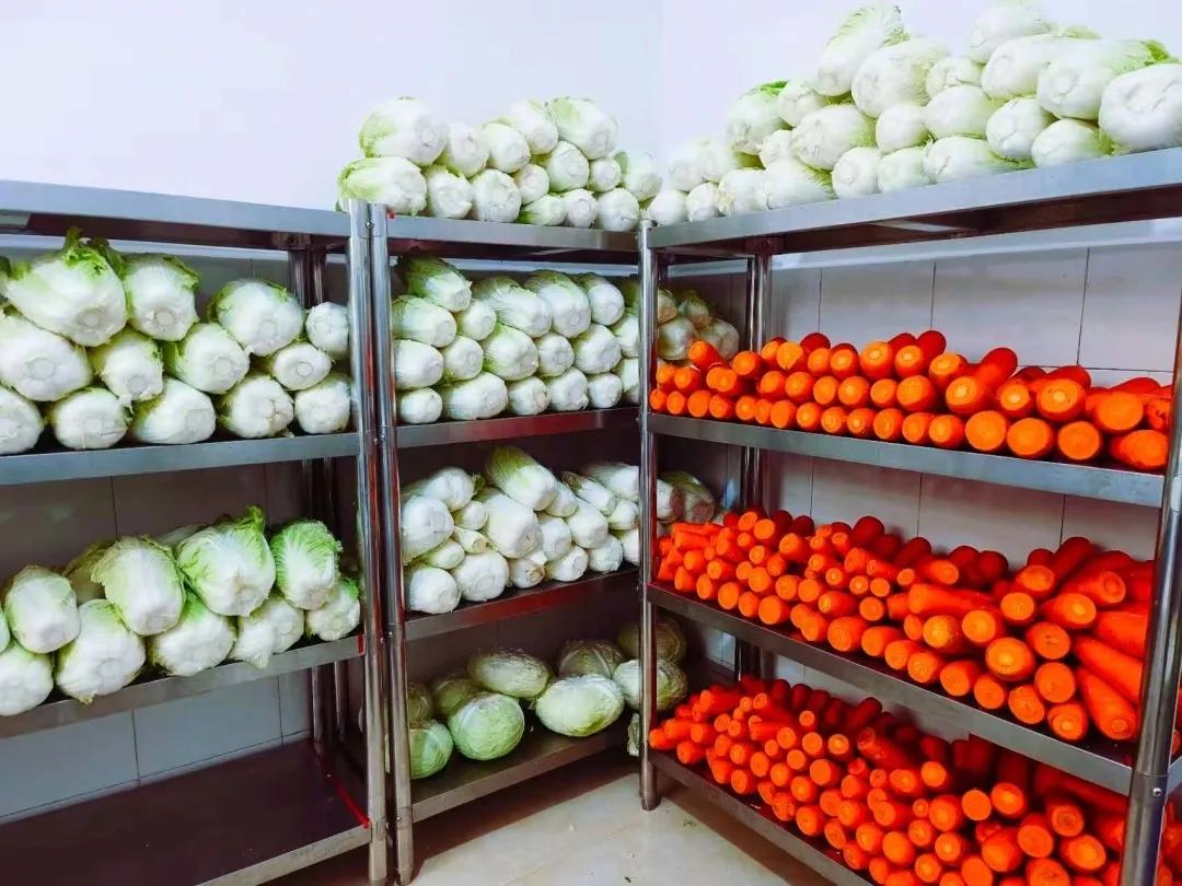 在食堂验货区,工作人员对每一件食材逐一拍照,实时上传至“铜仁市校园食堂大宗食品配送大数据平台”。该平台实现食材来源、重量、价格、质检报告等关键信息的全程可追溯,从源头筑牢食品安全防线;食材储存室内整洁有序,蔬菜、水果、牛奶等按类分区存放,新鲜充足的食材为营养餐提供可靠保障。