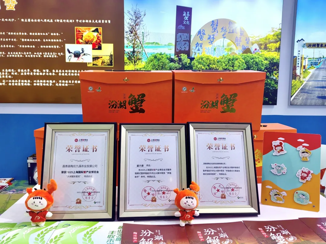 在今年的博览会中,作为浙江省第四批名优“土特产”入选产品——汾湖蟹参加了知名企业大闸蟹评比,凭借优异的品质,独特的风味,荣获本届博览会“大闸蟹新星奖”;养殖负责人翟六荣参加了河蟹养殖模式暨养殖能手评比大赛,凭借出色的养殖技术与丰富经验,荣获“养殖能手”称号。同时,该公司在河蟹养殖模式评选中脱颖而出,获颁“养殖模式大赛最佳模式创新奖银奖”。