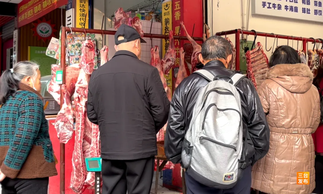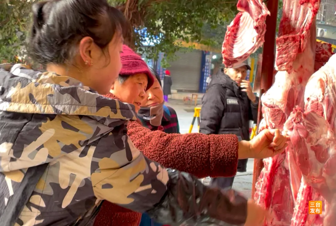 在建设路一家鲜牛羊肉售卖店摊位前,记者看到,不少市民一早便赶来挑选羊肉。摊位上,新鲜的羊肉色泽红润,纹理清晰,整齐悬挂。一旁的案板前,老板正熟练地为顾客称重、切肉。