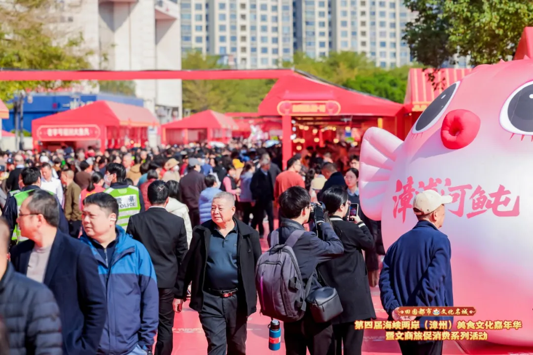 据悉,本次活动由福建省文化和旅游厅、福建省商务厅、漳州市人民政府指导,漳州市文化和旅游局、漳州市商务局、漳州市工业和信息化局、龙文区人民政府主办。此次活动为期三天,现场共设置550个展位,开设“一县一条美食街”“中华美食”“非遗瑰宝”“文化创意”“亲子乐园”“年货展销”六大展示展销区,汇聚两岸特色美食、非遗技艺、文创产品等多元内容,一站式呈现漳州特色美味。