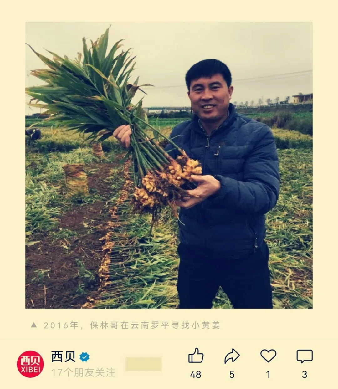 在古早的“西贝故事会”中,有很多讲述西贝食材寻味人四处奔波寻找上等食材的故事,当中就讲到寻味人曾跑到云南曲靖的罗平县,特意考察了那里的小黄姜种植基地。