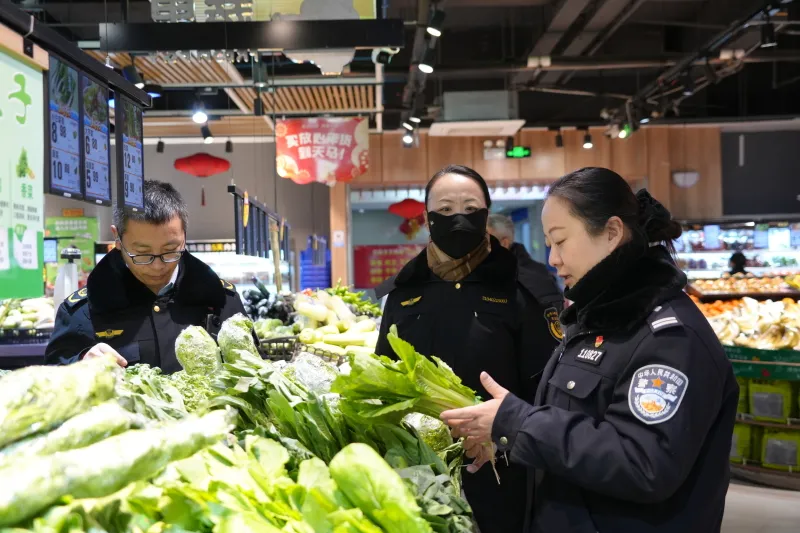 此次检查重点围绕进货查验、索证索票、台账记录、冷链储存、加工操作、环境卫生、储存加工等关键环节全流程进行细致排查。在天马超市国泰店,执法人员详细查看果蔬、预包装食品的生产日期、保质期及食品快速检测信息公布单等,督促经营者严格落实食品安全主体责任,杜绝过期、变质、“三无”食品上架销售。