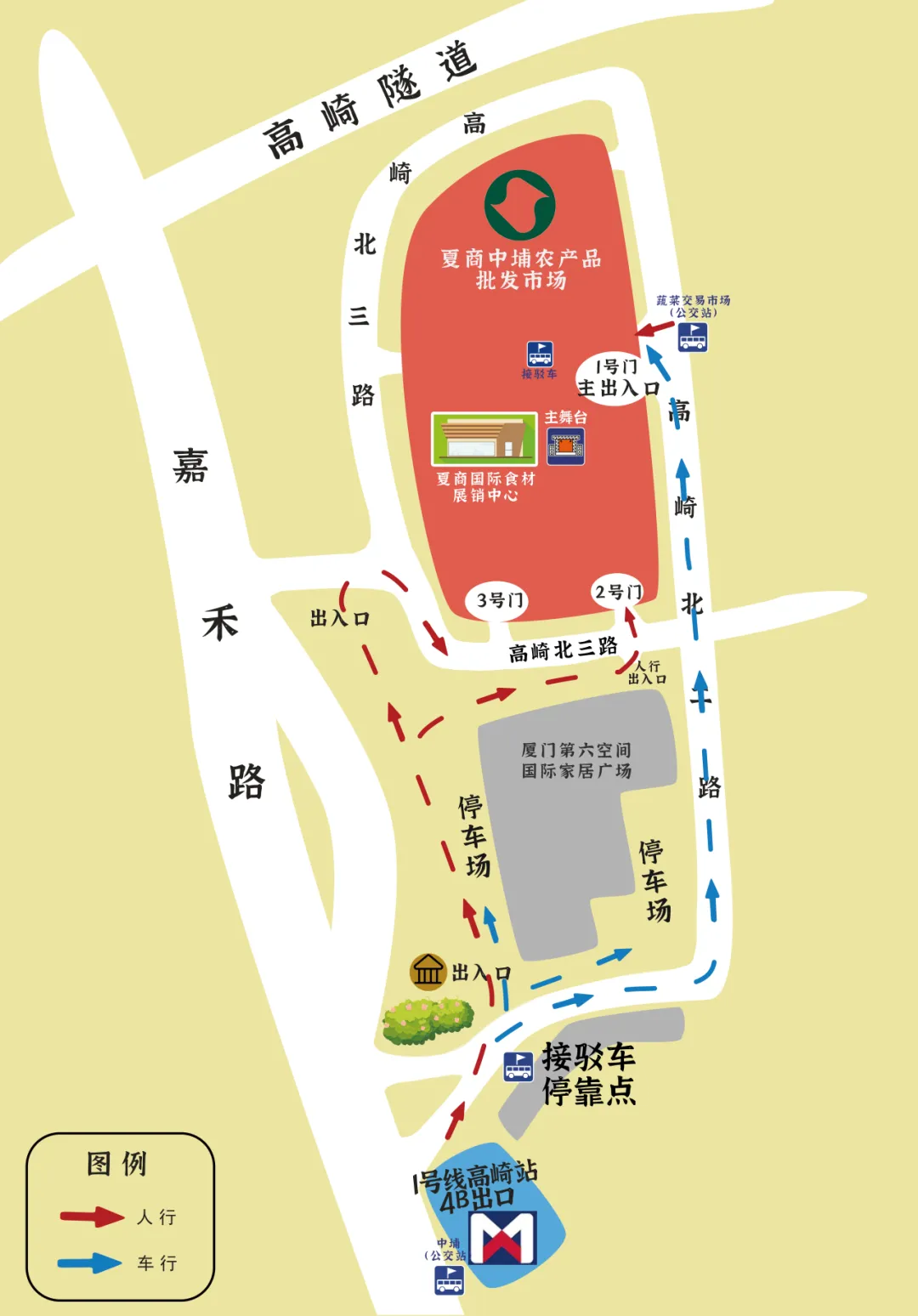 🚍 公交:乘44/430路至“蔬菜交易市场”公交站,直达市场1号门;乘44/430/40/81/655/952/323等路至“中埔”公交站,步行约500米到2/3号门
