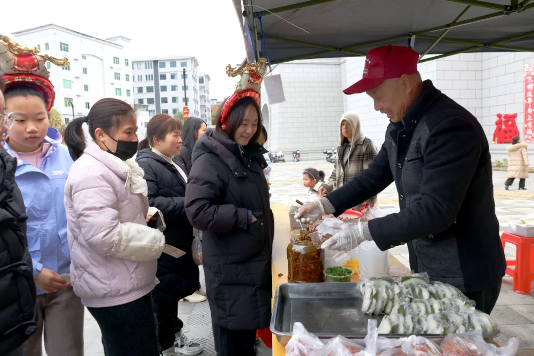 “从小吃到大的味道,今天全尝到了。”市民韩忱拿着刚买的暖菇糍,笑着说:“现场有发消费券,买粉皮、红菇这些土特产也实惠。现场有吃有逛有年货,过年的氛围很浓!”
