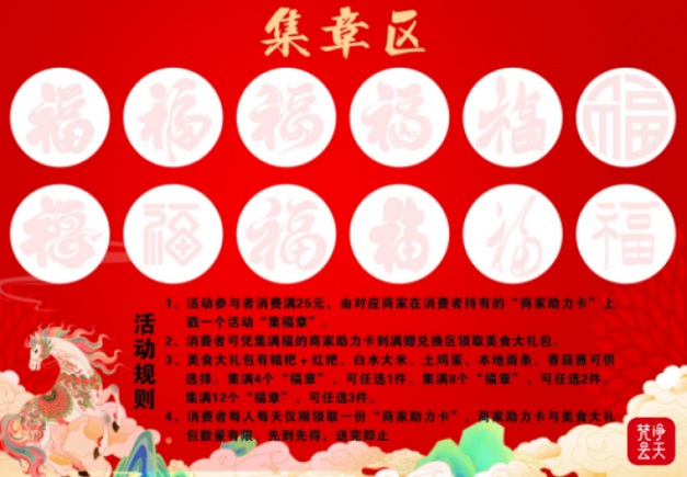 凭证发放区作为活动的“入口”,将为市民开启消费集福之旅。活动期间,该区域每天将发放1000份“商家助力卡”,3天共计发放3000份,原则上每位消费者每天仅限领取1份。市民可凭“商家助力卡”前往展示展销区消费,同步收集商家戳盖的“集福章”,为后续兑换美食福利做好准备。