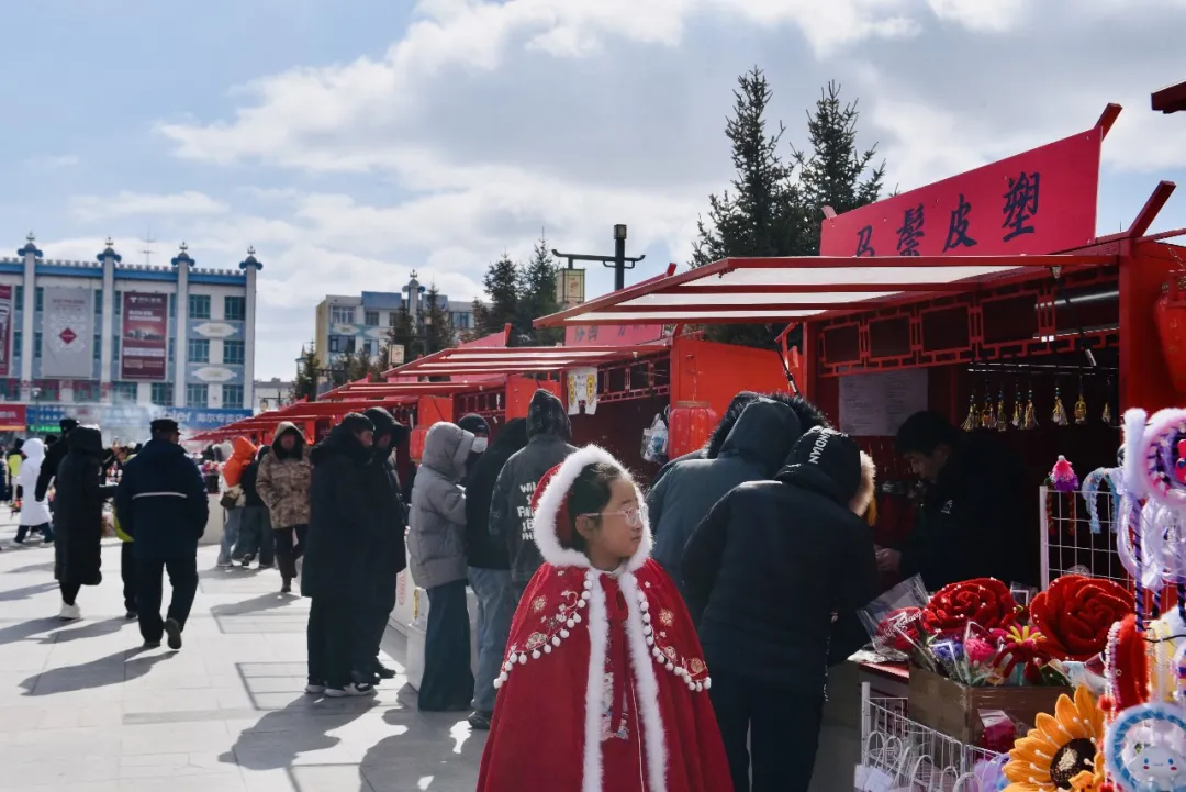 同步亮相的“年味·寻味锡林逛非遗”活动同样人气十足。贝子庙广场内设置30个零售摊位,邀请本地优质商户与非遗传承人集中布展,奶茶、元宵、非遗手作、小吃等让市民一站式品尝草原风味、触摸非遗温度。活动丰富了群众精神文化生活,更激活了本地文旅消费活力,营造欢乐祥和、喜庆热烈的浓厚年味。