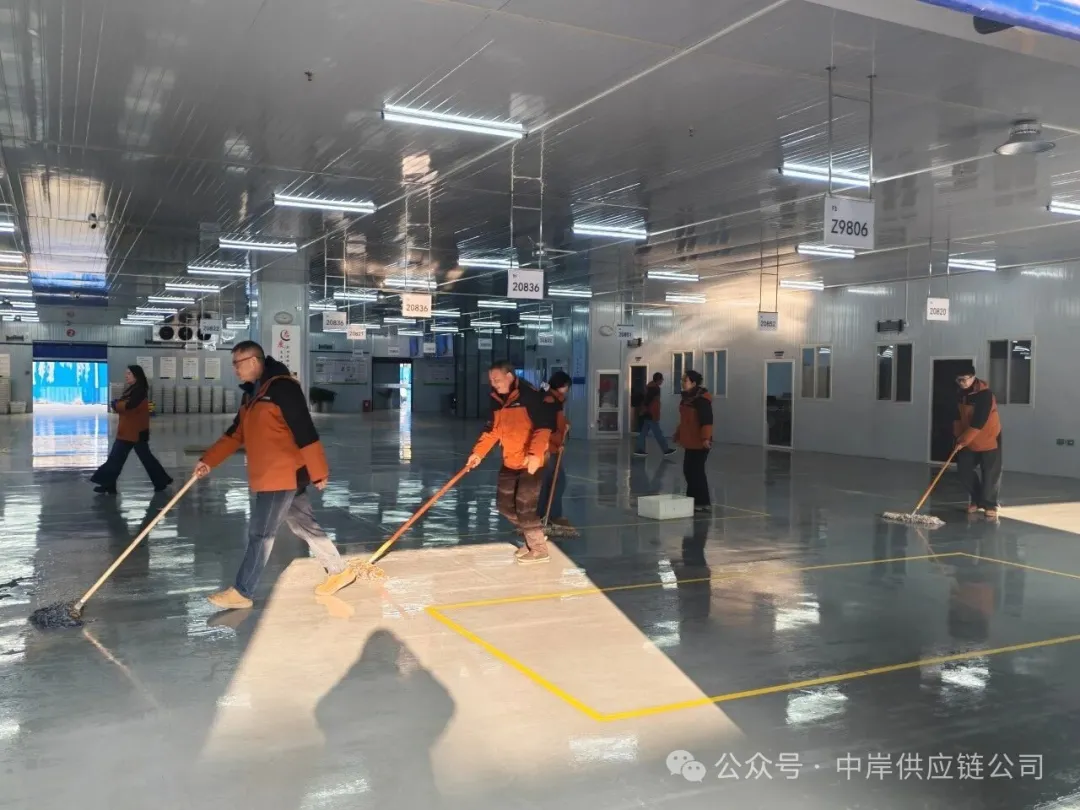 春风启新程,清洁护“食”安。3月2日,湖北中岸供应链公司集中开展环境卫生整治、全面消杀及设备巡检维护工作,持续提升作业现场精细化管理水平,全力保障春季开学食材配送安全、有序、高效。环境卫生是供应链高效运转的基础保障。公司对仓库、分拣车间、办公区域、公共通道及运输车辆进行全面清扫,重点清理货架、地面、设备周边卫生死角,规范物料堆放秩序;对操作台、装卸工具、周转容器进行清洗擦拭,确保作业环境干净、整洁、有序。