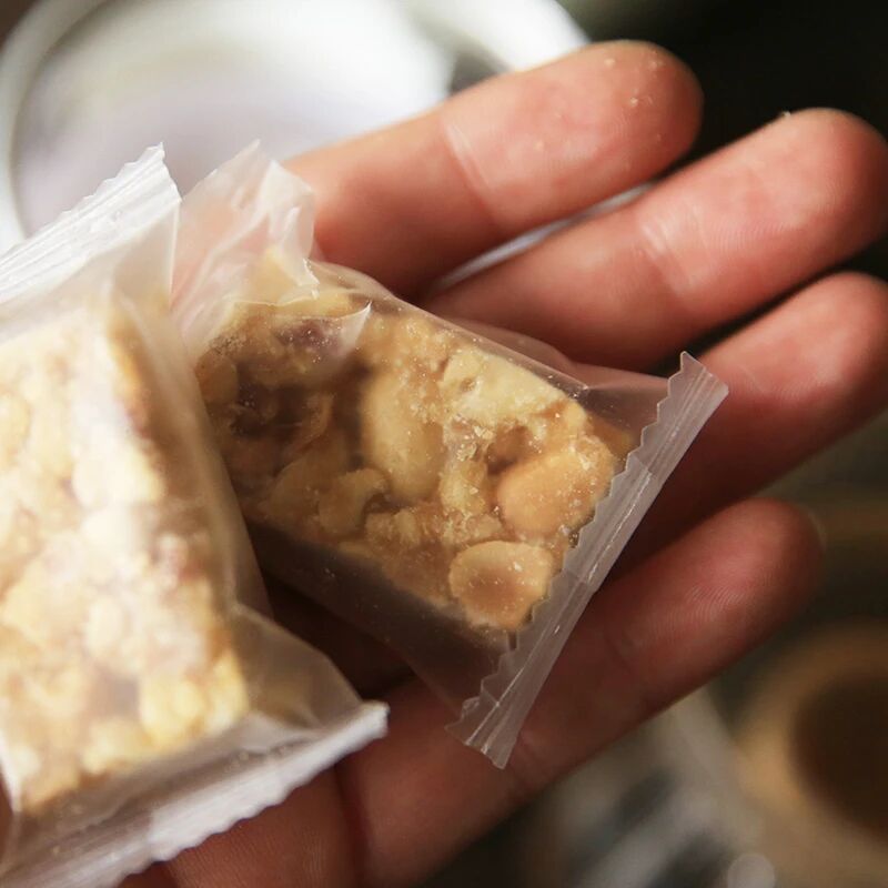 取一小块刚靠近嘴里,扑鼻而来的,花生香味,裹着麦芽糖的甜味,让人瞬间有种跌入梦境的香甜愉悦。酥脆清香花生味浓郁,老人小孩都喜欢,每一颗都独立包装,方便携带。