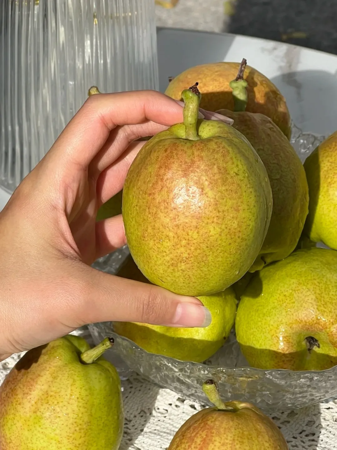 坚持自然树熟,等果子在枝头长到“糖心满了、果皮黄了”才摘,拿到手咬下去,脆嫩无渣,甜得清爽不齁,连汁水都带着自然的梨香。