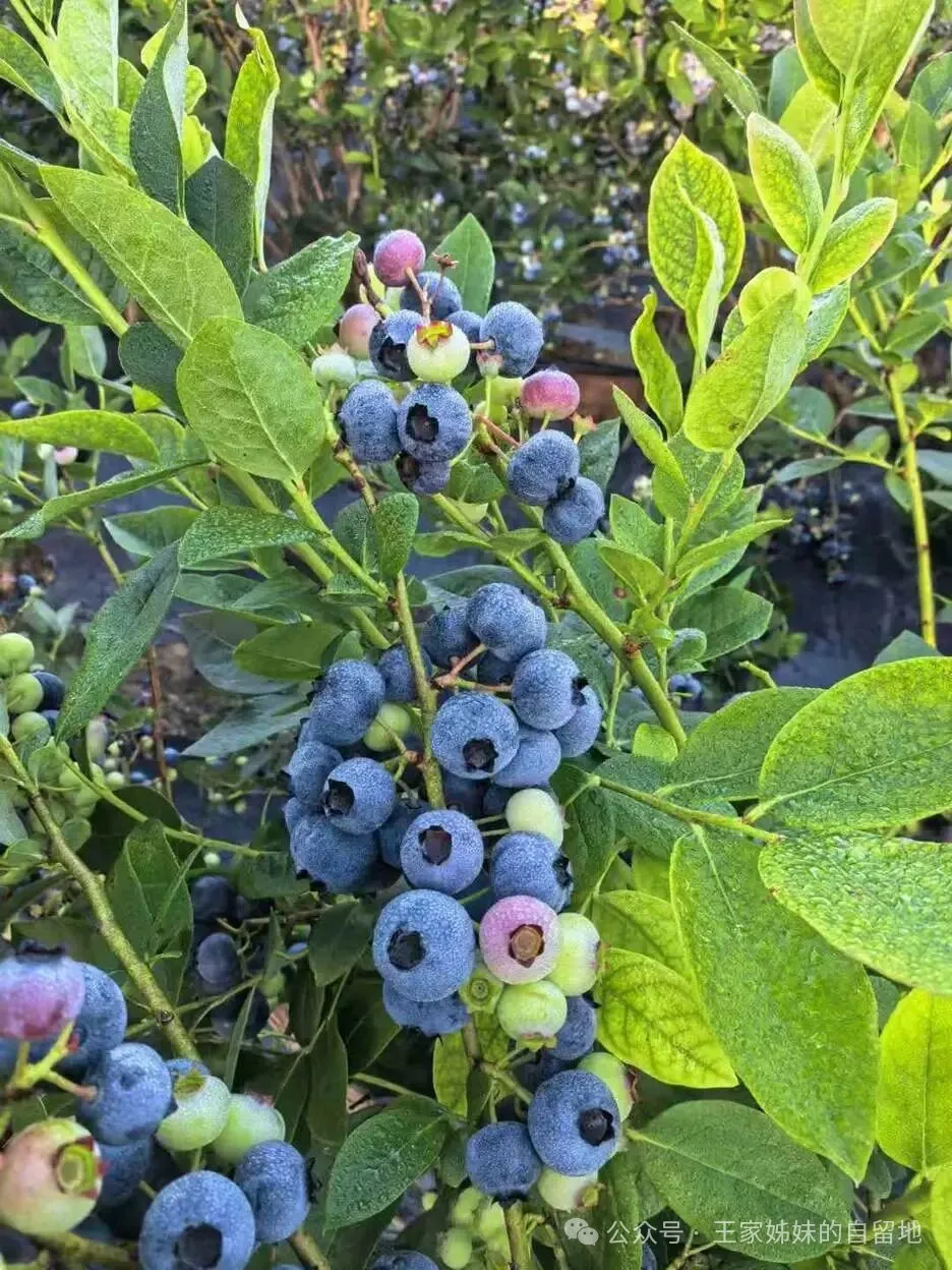 下面这张照片,是妹妹拍的蓝莓照片,跟上图的那张蓝色越橘果的照片相比,叶片不像,但果实很像。