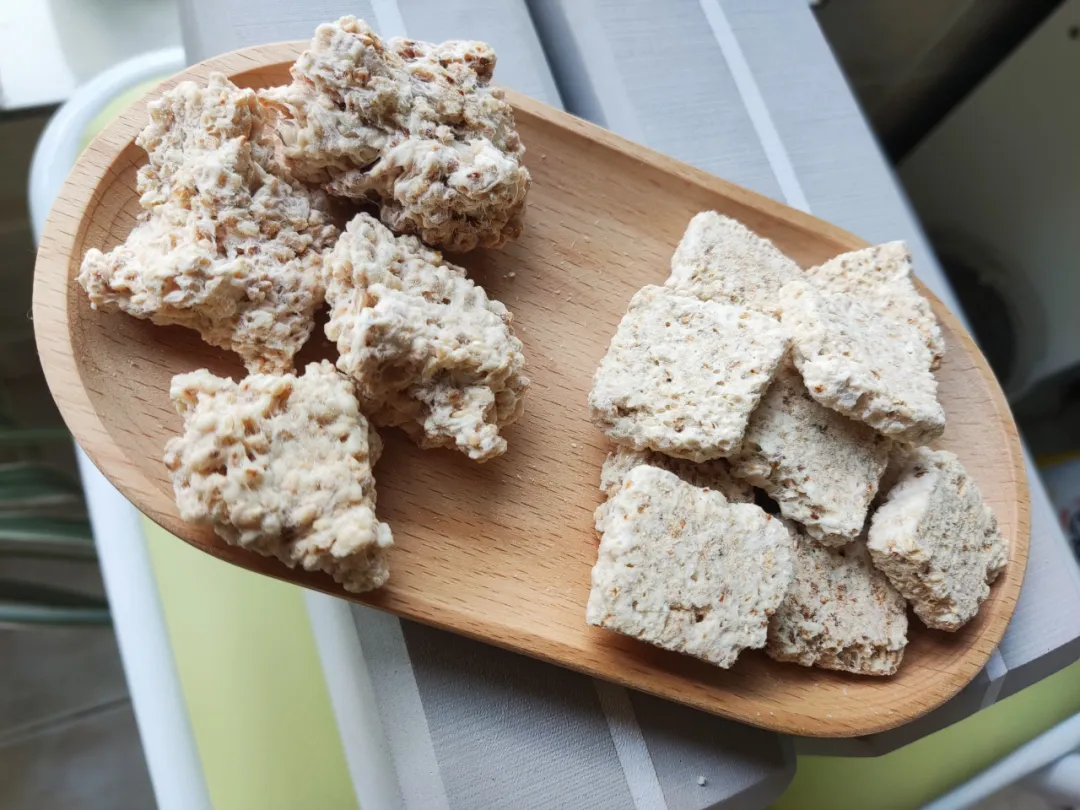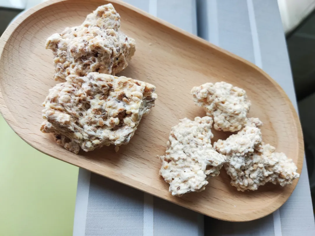 琼锅糖因制作方法和食材成分原因,成小块壮,很酥脆。快递运输过程中难免掉渣,不影响食用,不以此为退货理由。