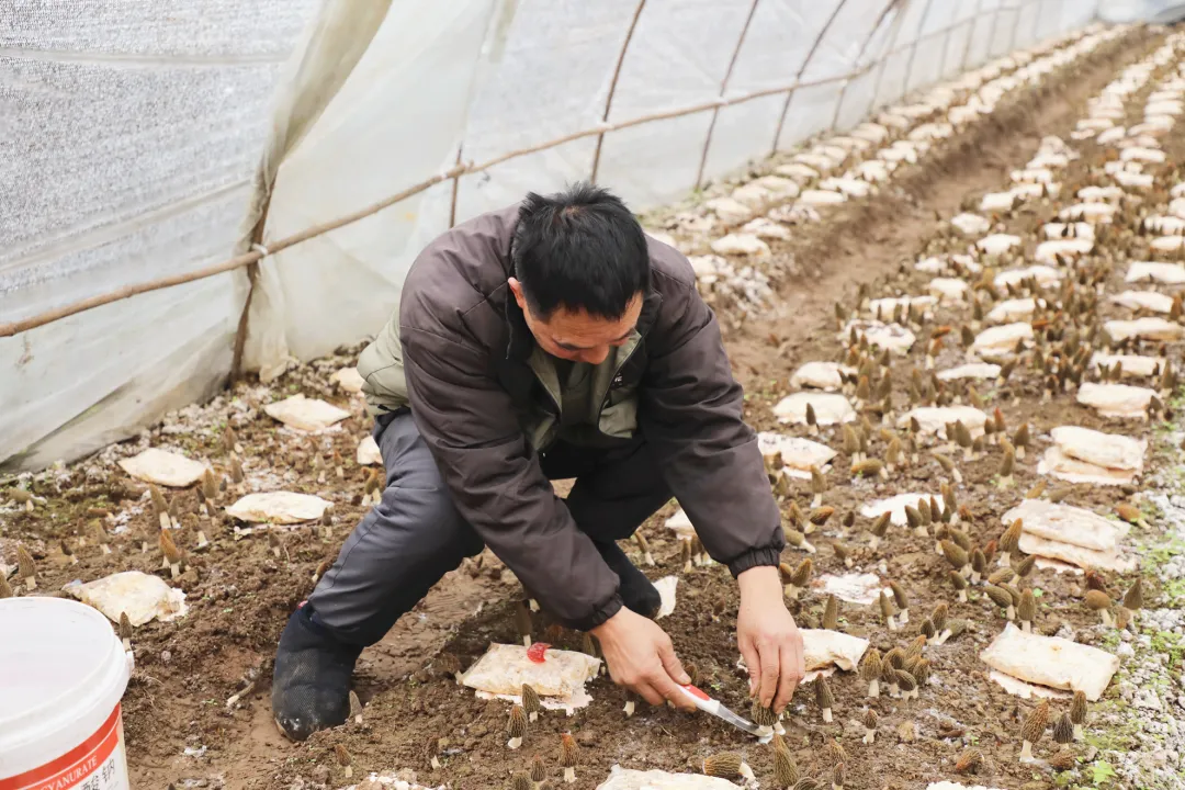 一朵朵羊肚菌破土而出