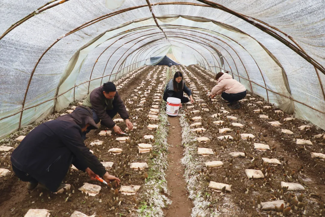 小刀轻割后装入菌筐