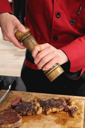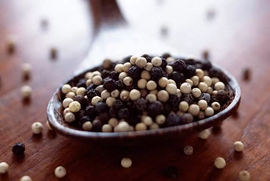 胡椒(Pepper),长得像一颗小地雷,西餐中常用它来去腥和增味提香。整粒胡椒用在肉类、汤类、鱼类及腌渍类食品的调味和防腐中,调味时粉状、碎粒状较多(比如煎牛排常用的黑胡椒碎)。补充一点,白胡椒和黑胡椒是一种东西,白胡椒是成熟的胡椒种子脱皮加工而成,黑胡椒是未成熟的种子晒干后加工而成的。
