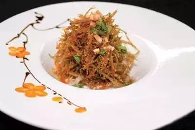 圆葱、橄榄油、日本味淋各50克,陈醋200克,白糖30克,盐、家乐辣鲜露、香菜碎各10克。