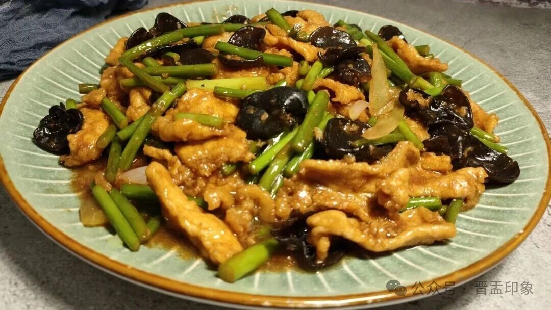 薄切猪肉滑油,配木耳、蒜薹快炒,醋香提鲜,外酥里嫩。是盂县餐馆的必点硬菜,一口尝尽晋菜的讲究